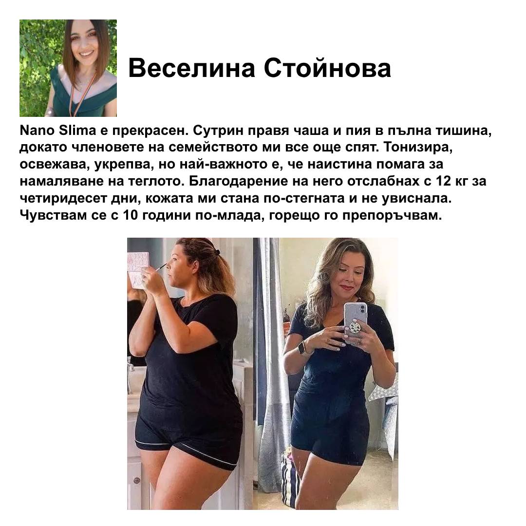 Енергията, получена по този начин, е много по-силна. По този начин веднага ще почувствате прилив на сила и качеството на съня ви ще бъде значително подобрено. Nano Slim е сертифициран като естествена витаминна добавка, така че е полезен не само за отслабване, но и за поддържане на здрав имунитет. Важно! За да активирате режима на кетоза, трябва да приемате продукта непрекъснато в продължение на ддве седмици. И след това ще започнете не само да усещате резултата от приемането на продукта, но и да го видите.